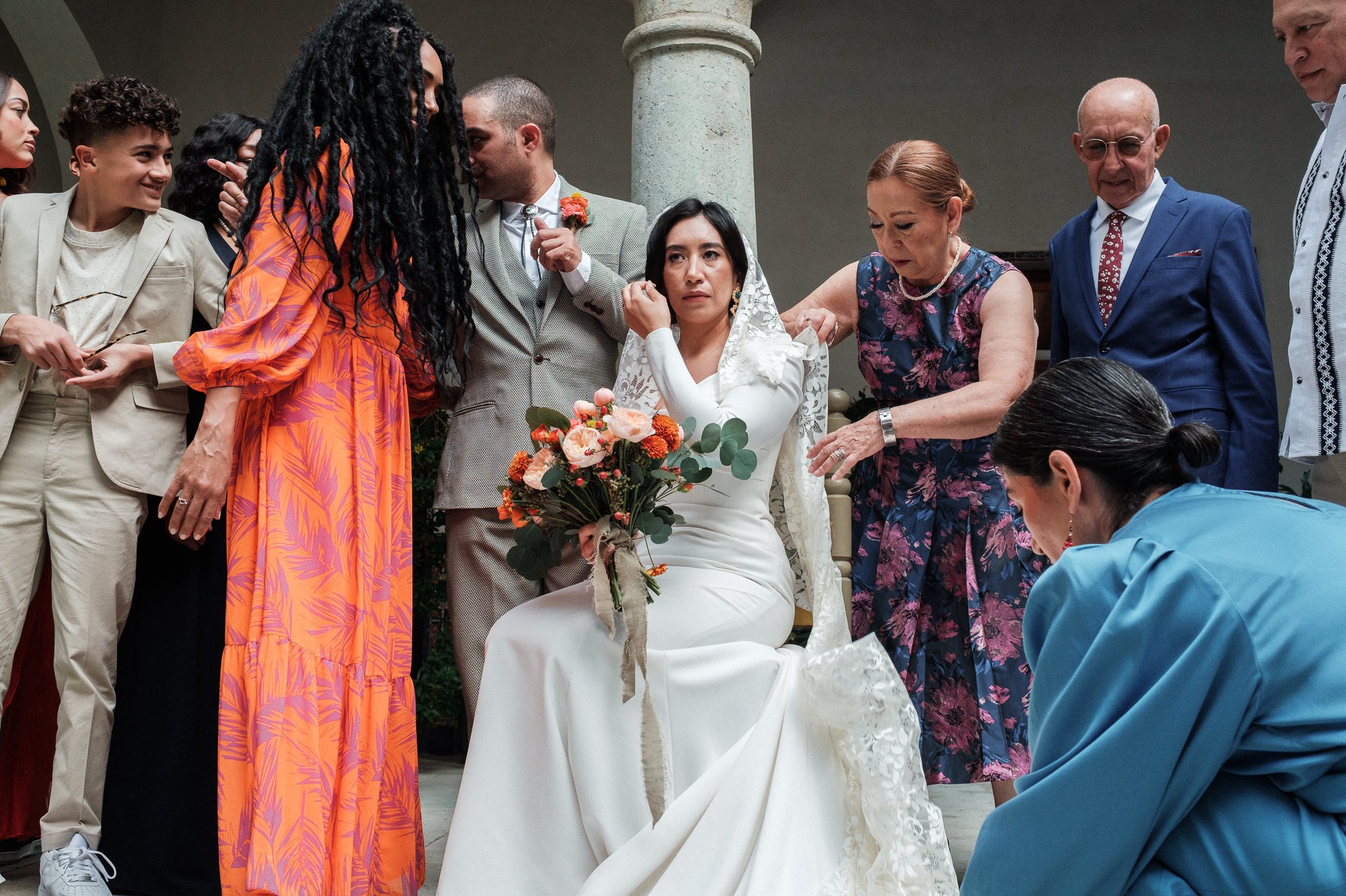 Most weddings I photograph take place in Oaxaca’s historic center, where everything happens within a few blocks. Guests walk from one place to another, and the celebration flows naturally through the city.